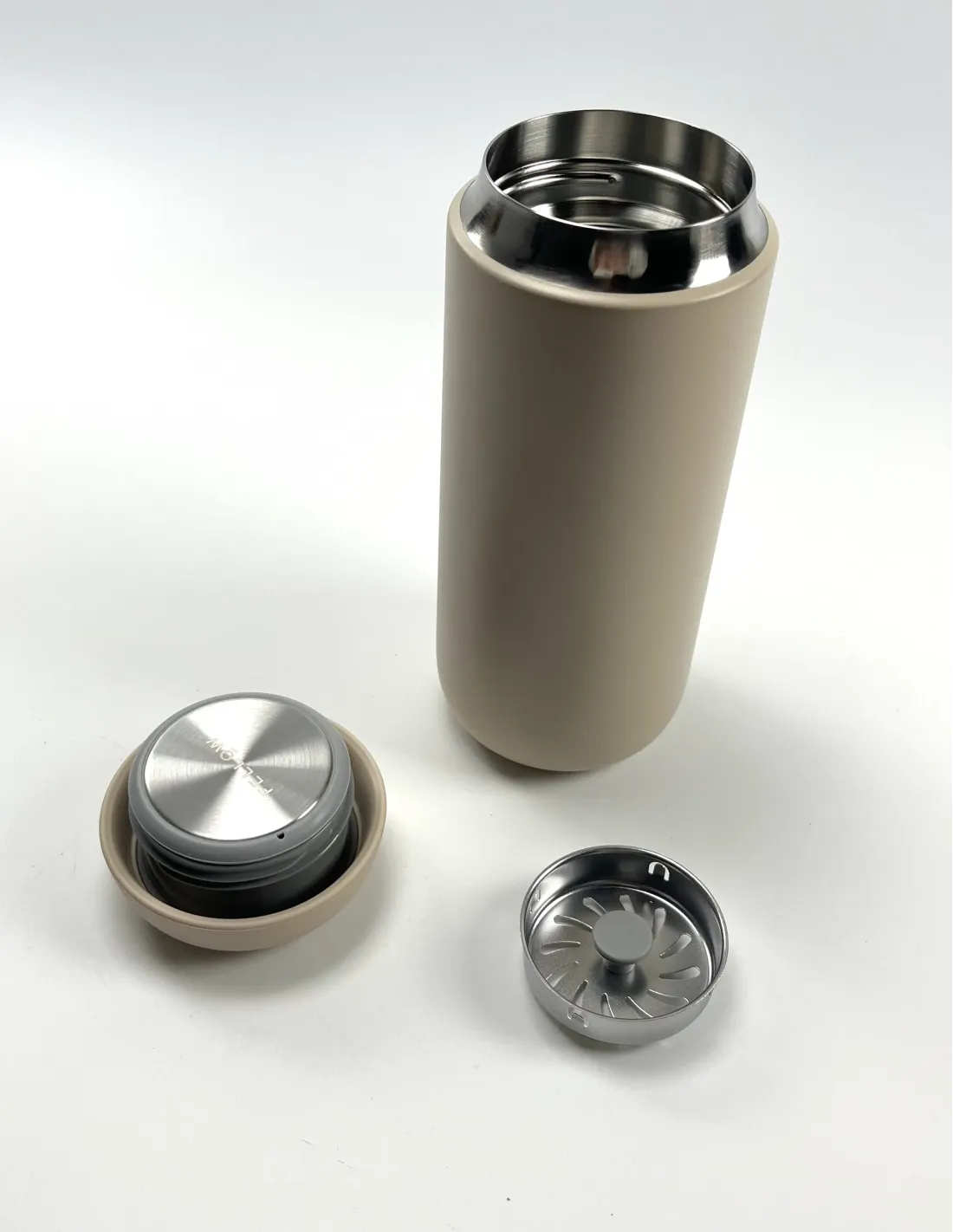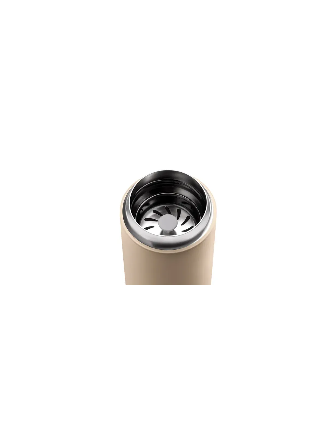 Vrč je zasnovan tako, da se prilega večini avtomobilskih držal za skodelice, in ima priročen vložek, ki je odporen proti razlitju. S tankim robom, ki spominja na obliko kozarca za vino cabernet, boste v pijači iz njega resnično uživali. Notranja keramična površina ohranja čisti okus kave brez neželenega kovinskega priokusa.