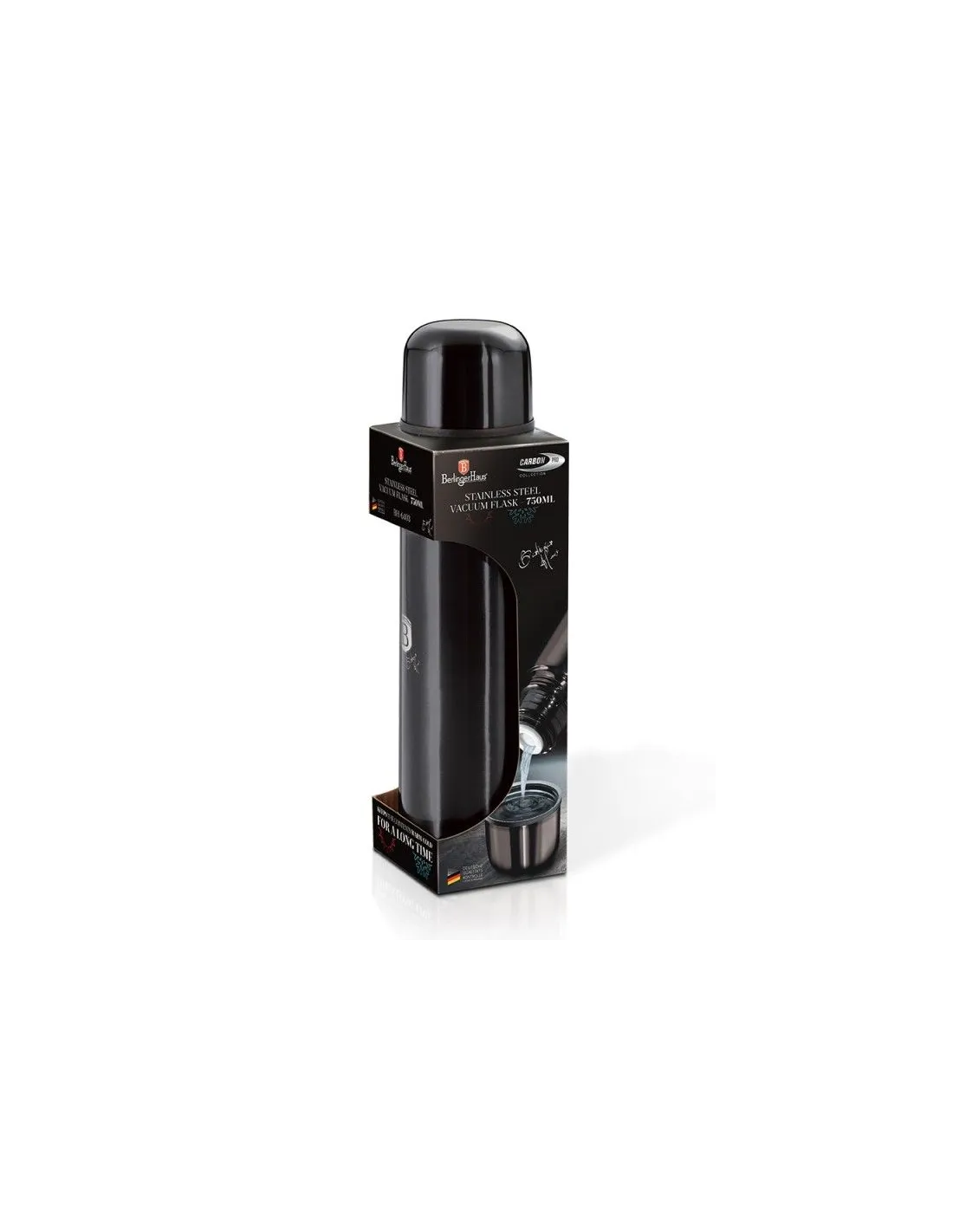 Termoska iz nerjavečega jekla z dvojno steno in odličnimi toplotnoizolacijskimi lastnostmi. Prostornina: 0,75 litra.