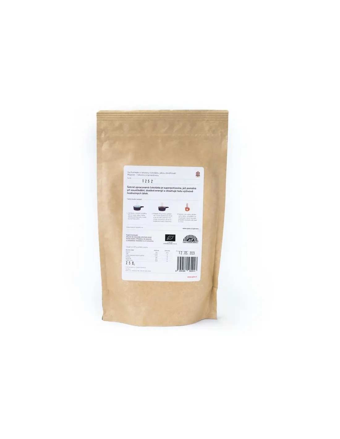 Skrbno obdelana čokolada je superživilo, ki pomaga pri koncentraciji, daje energijo in vsebuje vrsto prehransko dragocenih snovi.Sestavine: kakavova zrna, posušen trsni sok