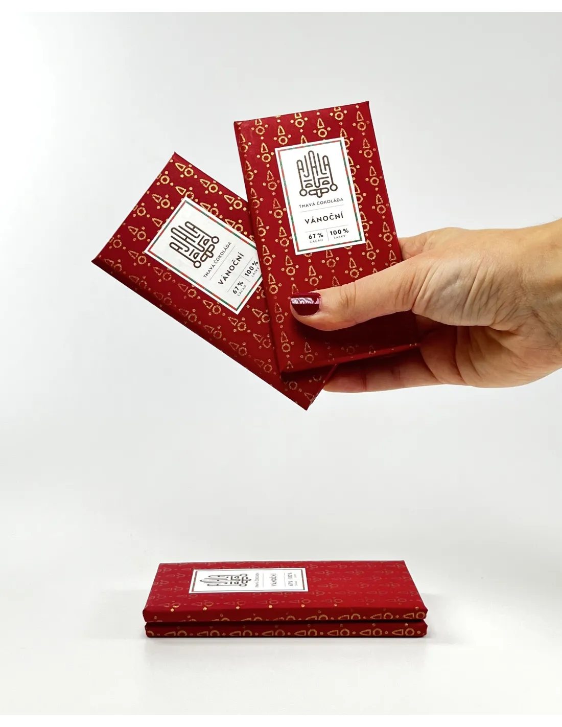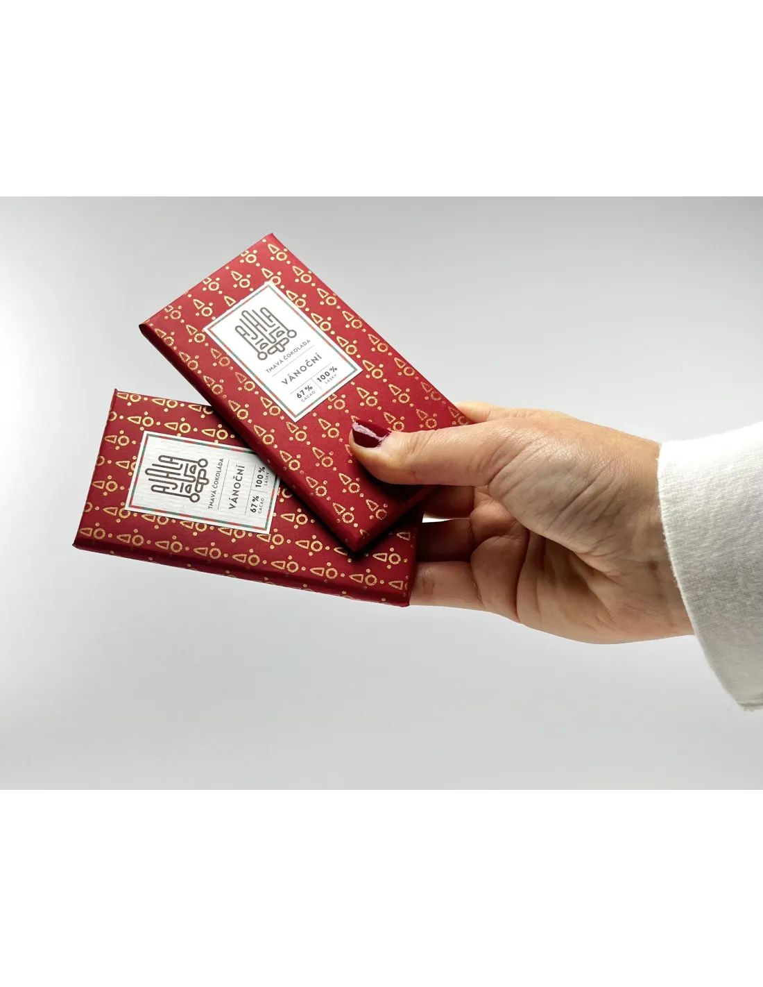 S to tablico čokolade želimo izraziti, kaj nam pride na misel, ko pomislimo na božič. Povonjajte in uživajte v edinstvenem okusu čokolade s toplimi začimbami. Pozabite na vse skrbi in se prepustite čarobnemu božiču .