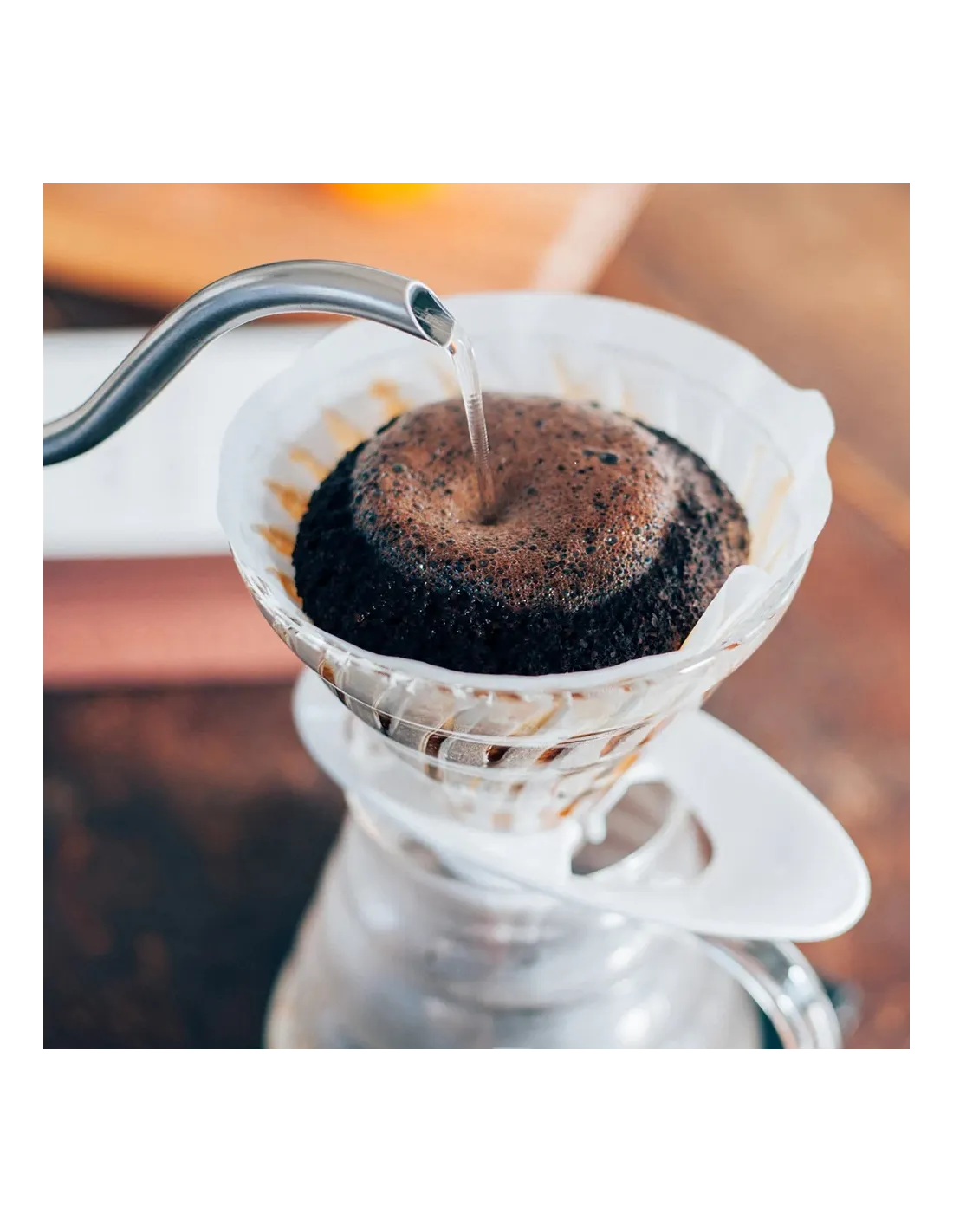 Priložena je tudi plastična zajemalka za kavo. Dizajn se ujema s celotno serijo V60. Skupaj s kapalnikom priporočamo nakup papirnatih filtrov Hario Za popolnoma popolno pripravo priporočamo tudi vrč za vodo Hario Buono, ki zagotavlja enakomeren pretok vode pri nalivanju.