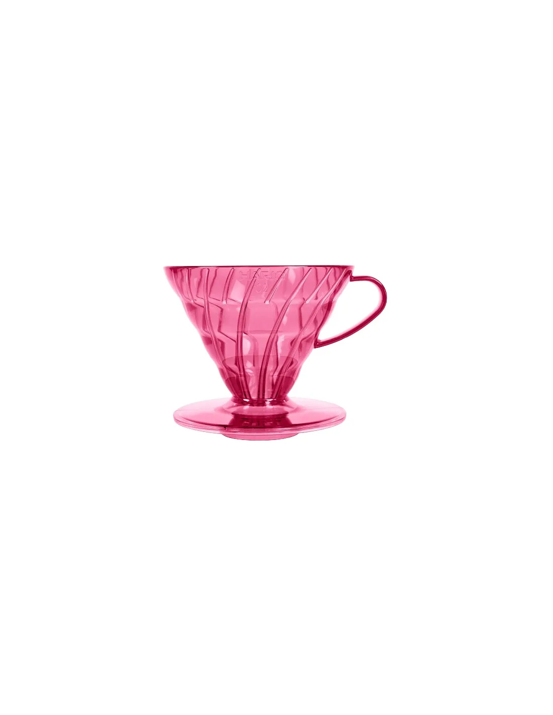 Plastični kapljalnik Hario V60 za enostavno pripravo 1-4 skodelic filter kave. Roza oblika.