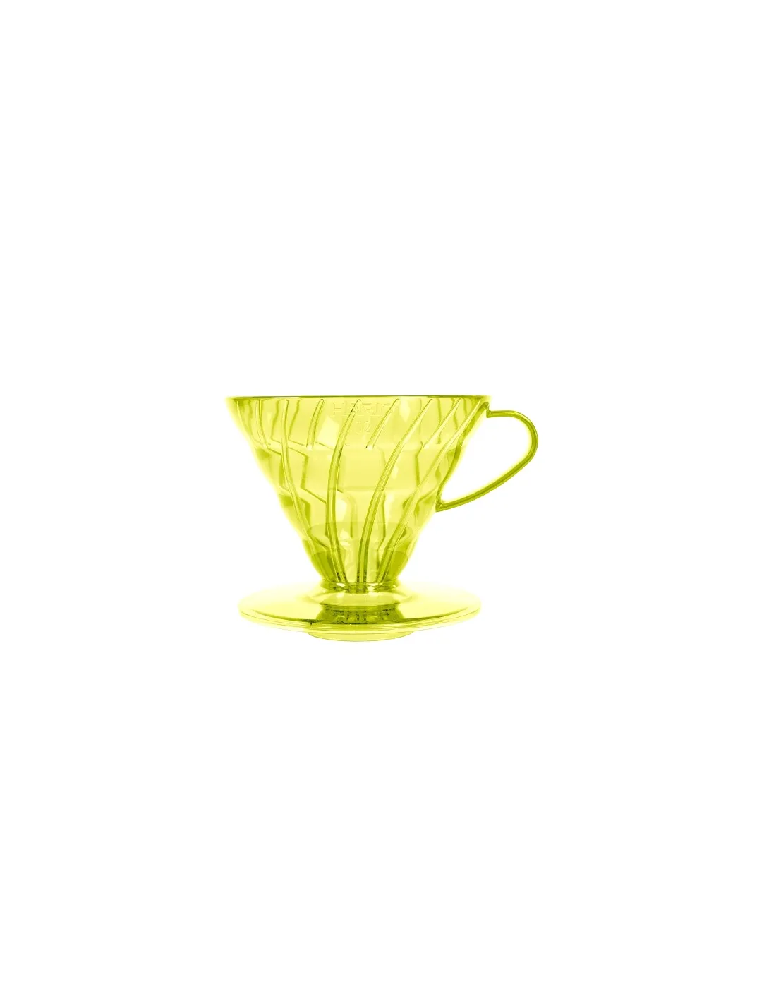 Plastični kapljalnik Hario V60 za enostavno pripravo 1-4 skodelic filter kave. Rumena oblika.