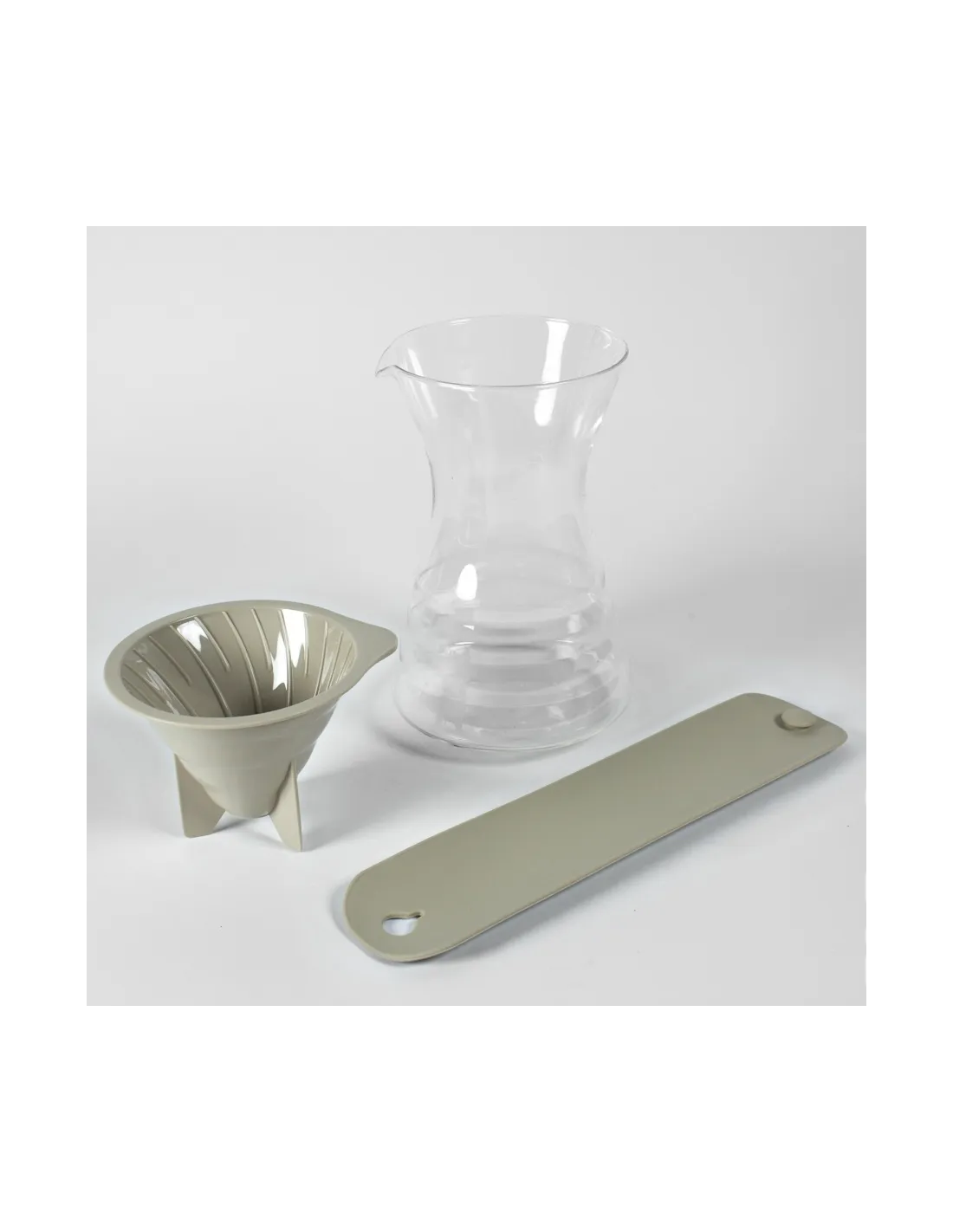 Celoten komplet vas bo očaral s svojo izjemno eleganco in praktičnostjo. Preprosto postavite kapljalnik v dekanter, vstavite filter, srednje mleto kavo, nalijte in uživajte v pogledu na svežo kavo, ki se pravkar filtrira.