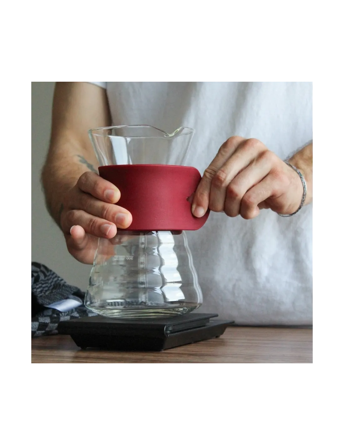 Dekanter vas bo presenetil s svojo lahkotnostjo in prijaznostjo do uporabnika. Karafa je obdana s toplotno odpornim silikonskim korzetom, ki ščiti pred opeklinami. Zaradi tega je karafo zelo enostavno držati v roki.